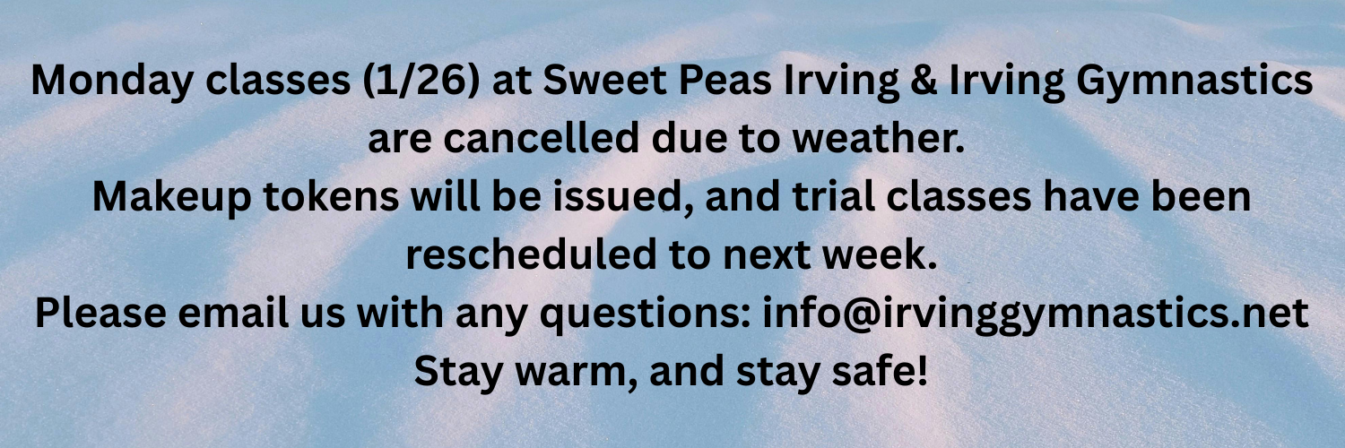 Free trial classes are available for Sweet Peas Preschool Gymnastics.