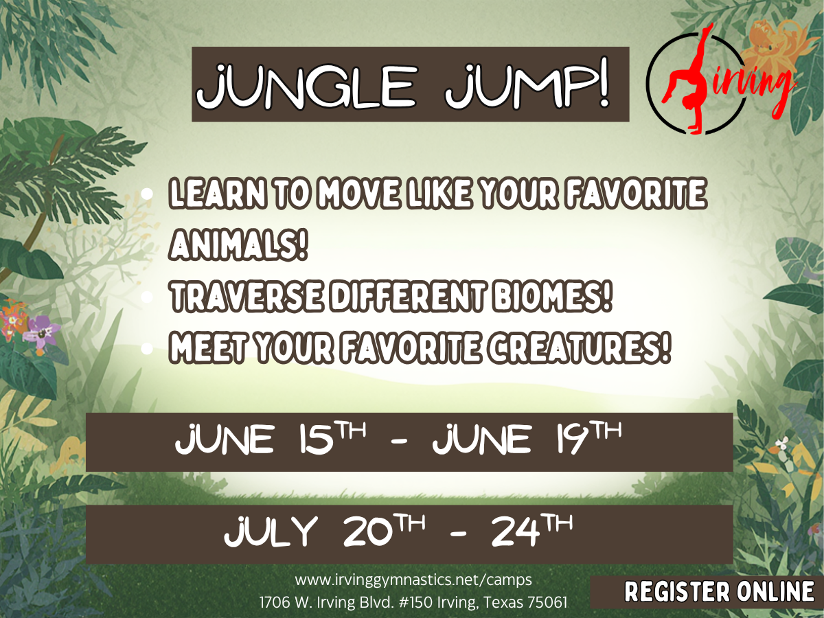 Swing into a wild adventure! 🌿 Campers will jump, climb, and explore through gymnastics, jungle-themed games, and creative crafts.