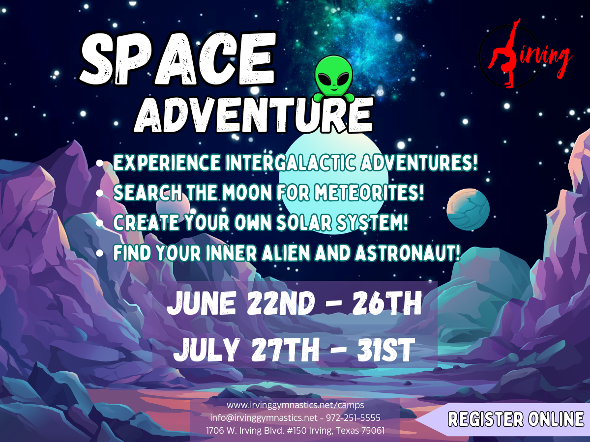 Blast off into a week of fun! 🚀 Campers will build skills through gymnastics, space-themed challenges, and creative projects.