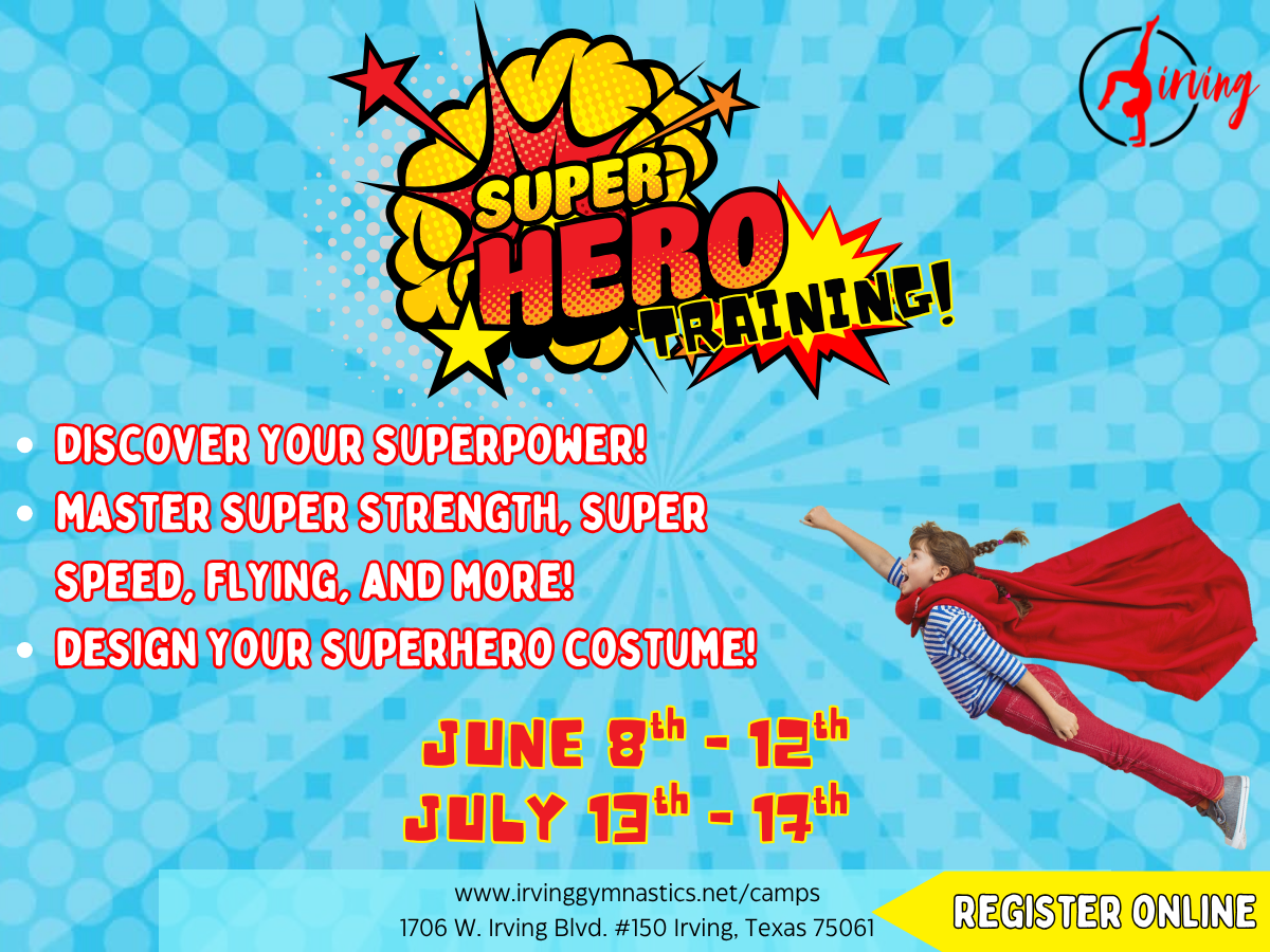 Train like a hero all week long! 🦸 Campers will build strength and confidence through gymnastics, obstacle courses, and superhero challenges.